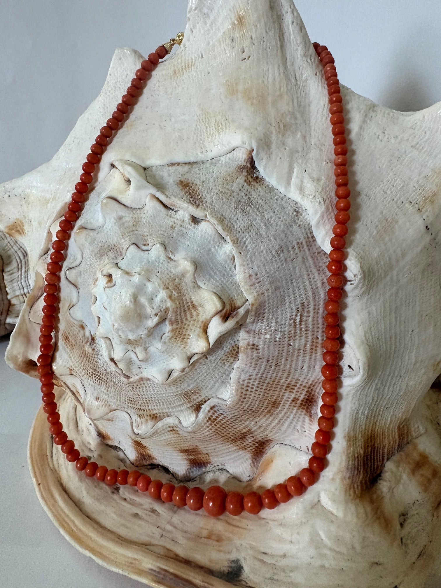 Vintage Korallenkette mit 333 Gold Tulpenverschluss – Fein abgestufte Rot-Orange Perlen – 42,5 cm