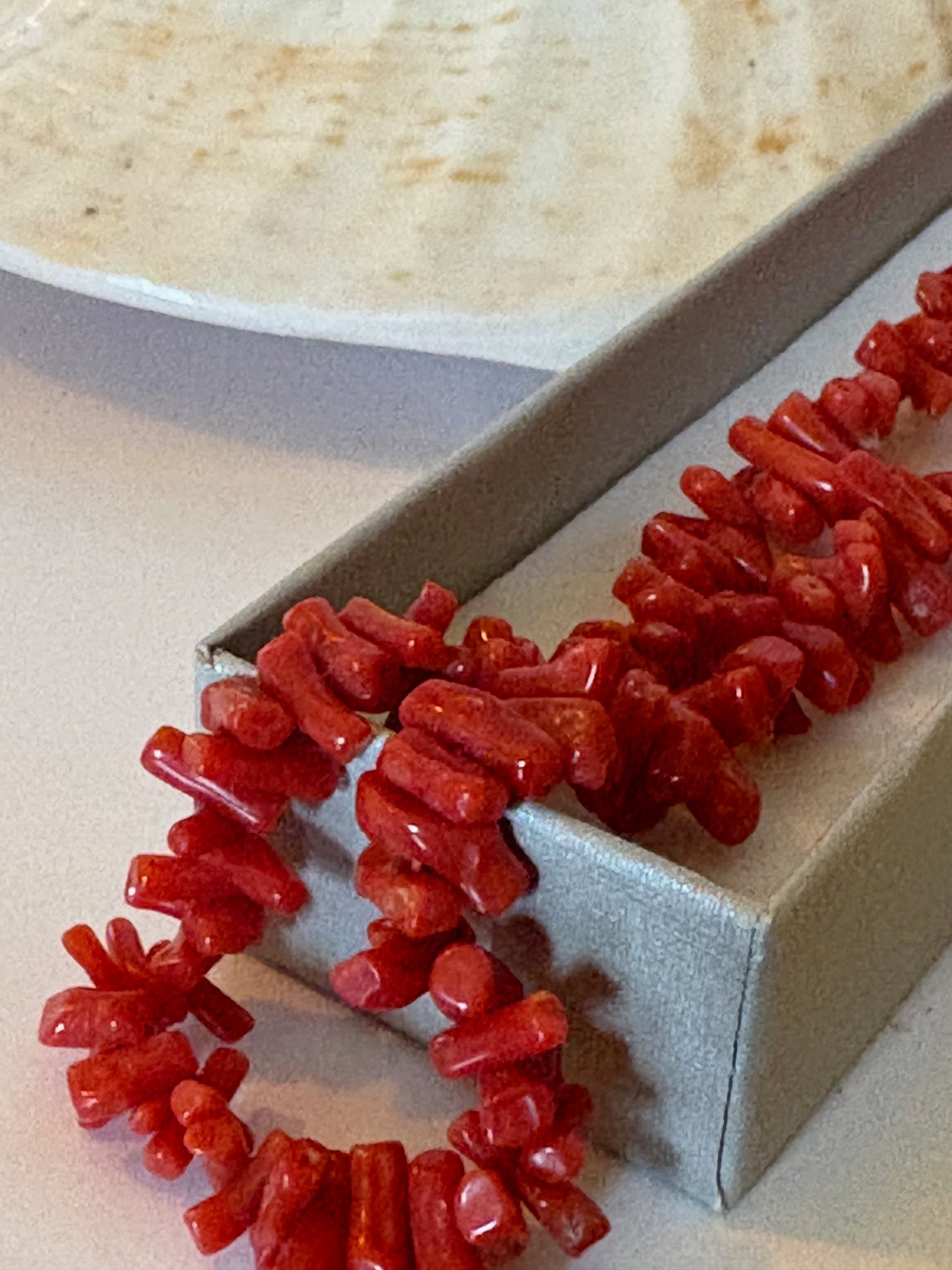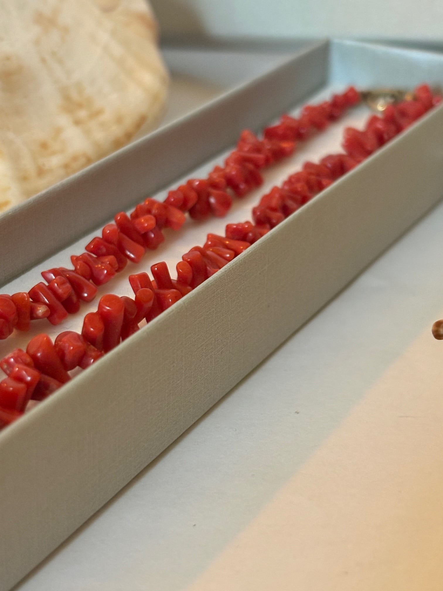 Materialangaben erfolgen nach bestem Wissen. Es liegen keine Herkunfts-, Alters- oder Artenschutznachweise (CITES) vor. Die Kette wird ausdrücklich nicht als Edelkoralle angeboten.