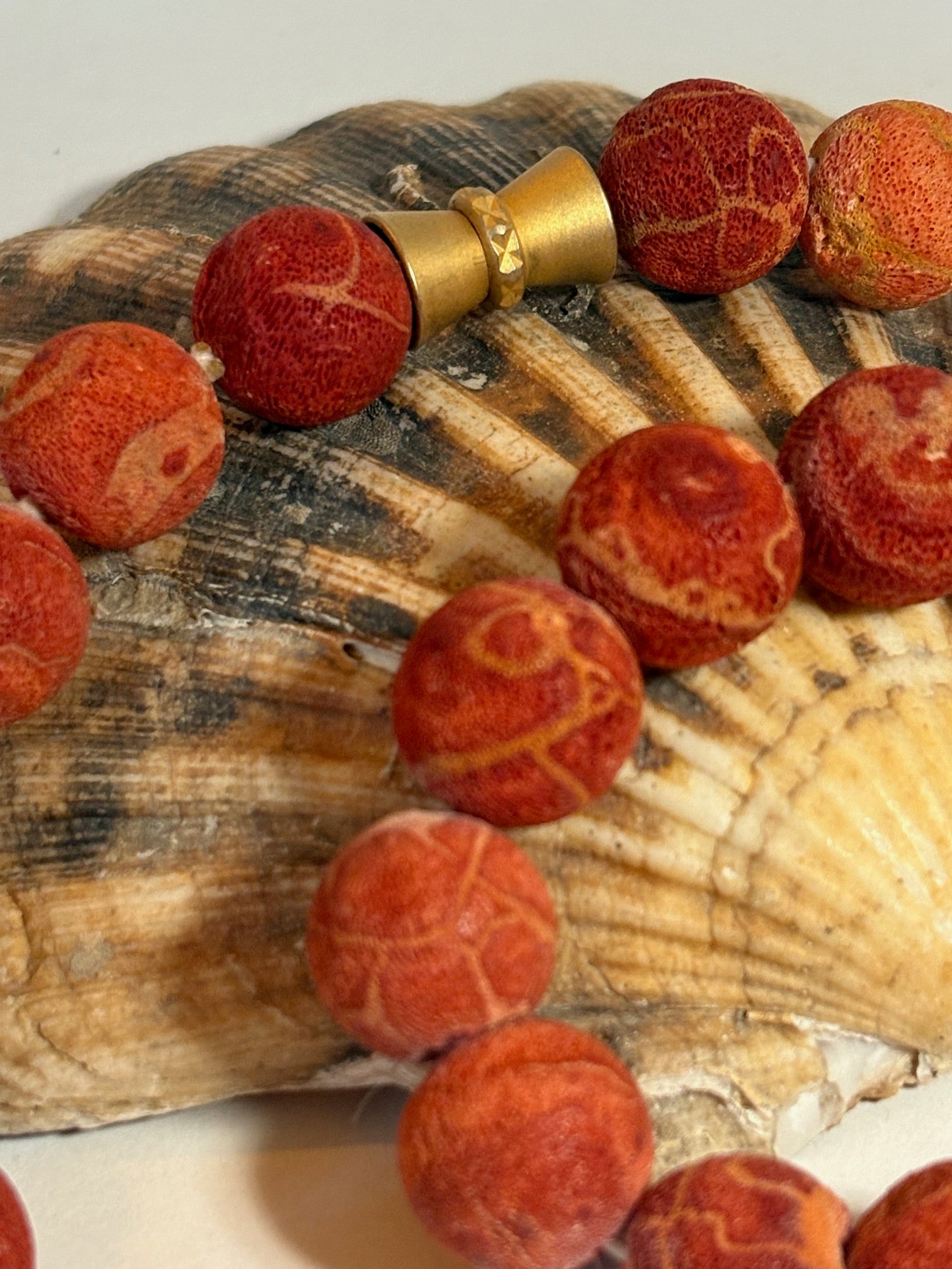 Material: Korallenmaterial in roter Farbgebung (nach optischer Einschätzung, keine Art- oder Herkunftsbestimmung)