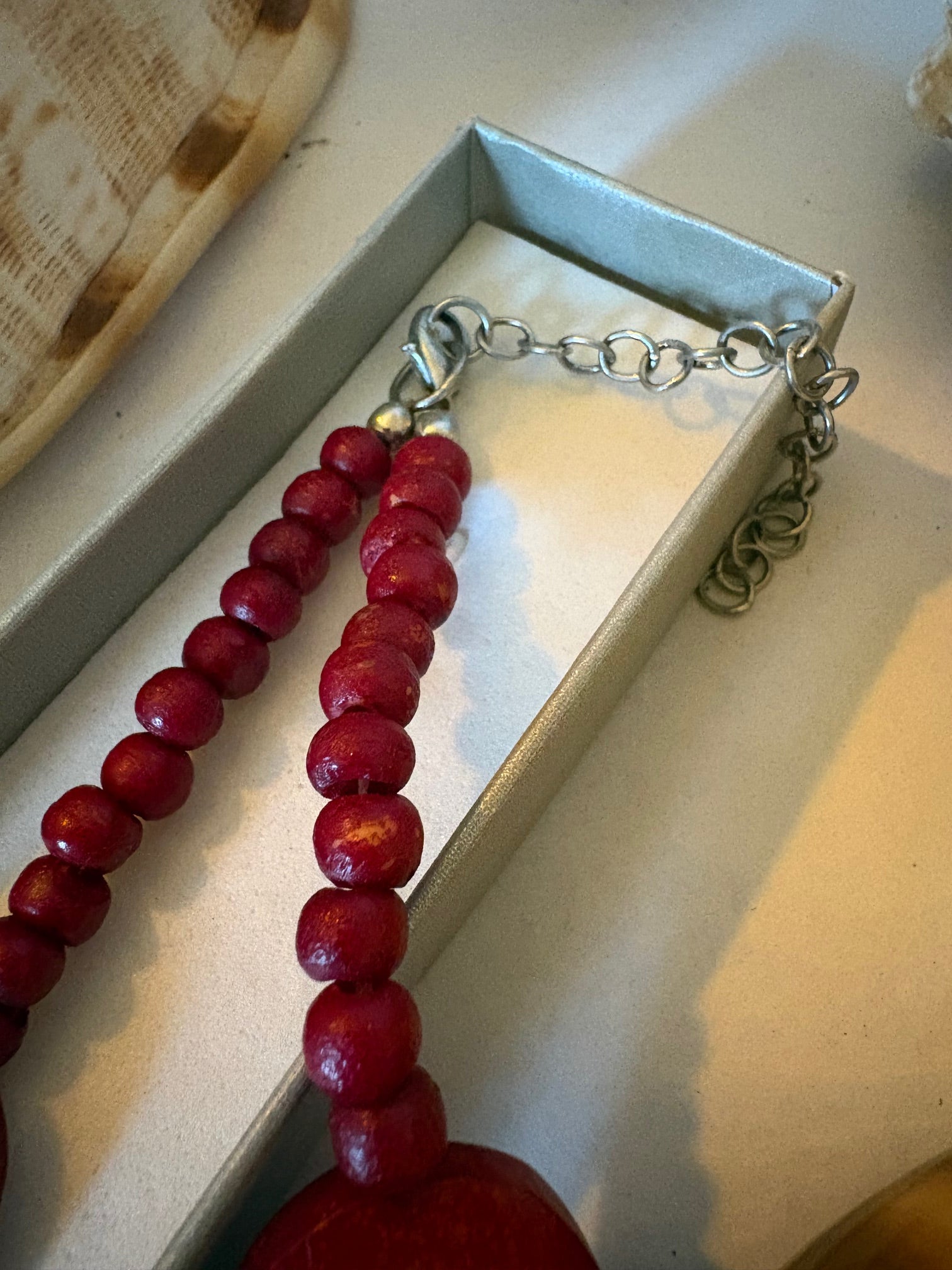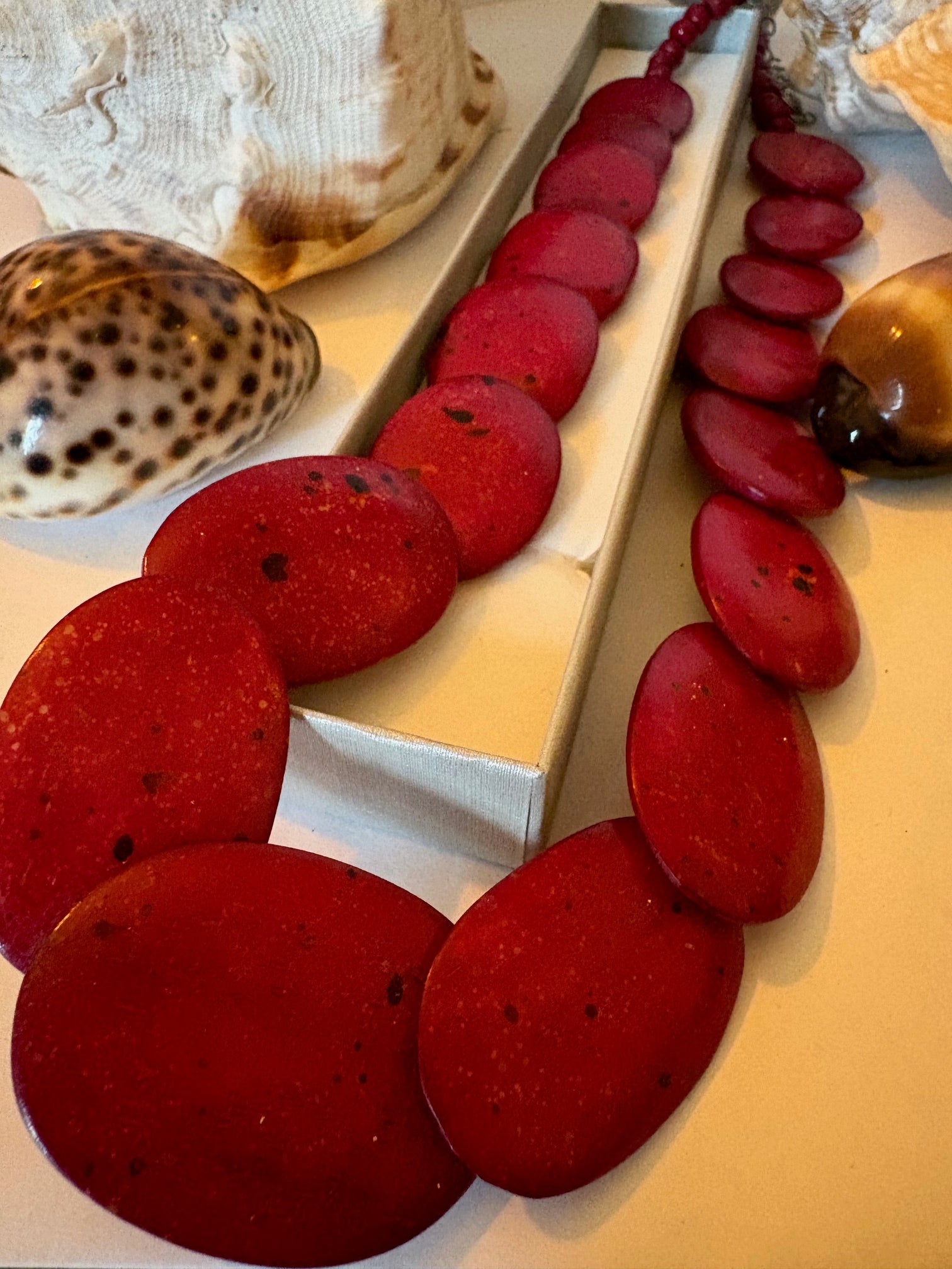 Vintage Tagua Nuss Kette in Rot – Handgearbeitete Statementkette mit Verlängerung